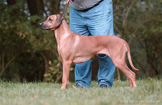 Behang ok, Bewegung korrekt (Müller – CH)Symetrisch aufgebaut, korrekt proportionierter Kopf, Stop gut markiert, Nasenschwamm schwarz, korrekt getragene Behänge, trockener Hals, Ridge klar gekennzeichnet, Bewegungsablauf mühelos, prima Brusttiefe (Walter Schicker)